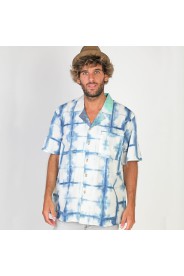 UNISEX Wide Shirt with loose sleeves printed by hand with Shibori technique with Indigo vegetal dye. Recycled wood buttons.